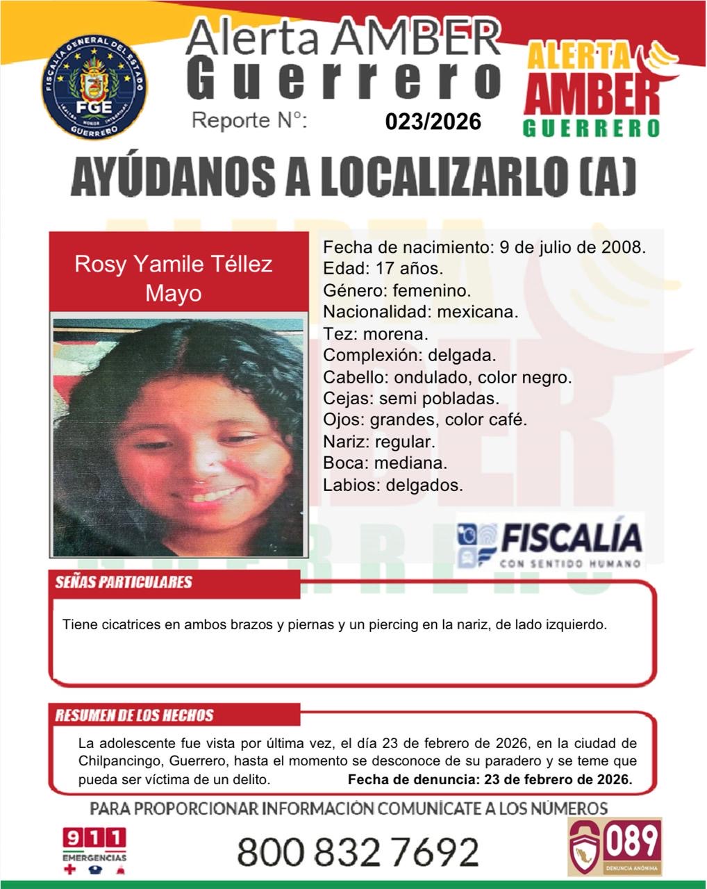 Fiscalía General del Estado solicita su colaboración para localizar a Rosy Yamilé Téllez Mayo.