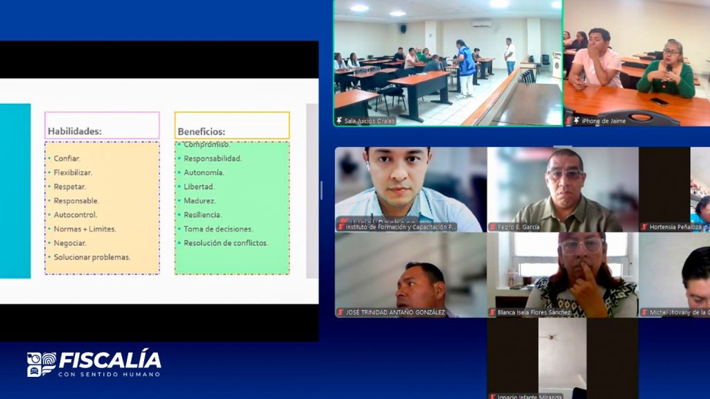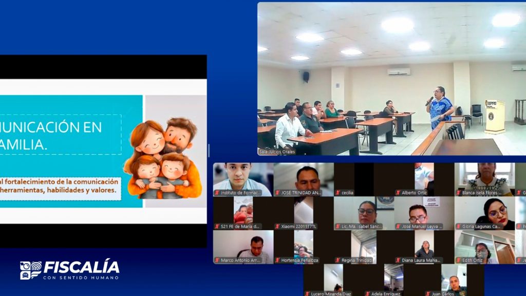 Chilpancingo, Gro., 19 de marzo de 2026.– La Fiscalía General del Estado de Guerrero, a través del Instituto de Formación y Capacitación Profesional, llevó a cabo la conferencia titulada “Comunicación en la familia”, impartida en modalidad presencial en la Sala de Juicios Orales del Instituto de Formación y Capacitación, así como en modalidad «a distancia» mediante la plataforma digital Zoom, dirigida a servidoras y servidores públicos de esta institución, así como al público en general.